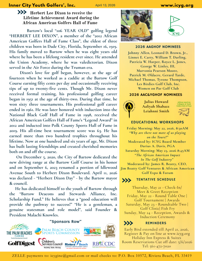 African American Golfers Museum & Inner City Youth Golfers Clubhouse is coming soon! Dont miss getting your “Brick” for this historical building.
